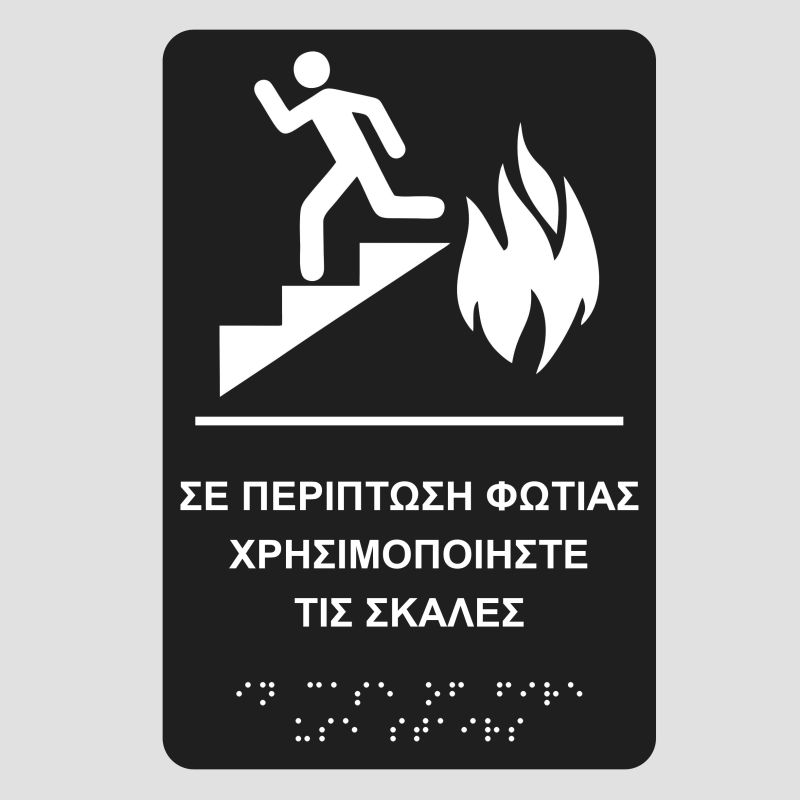 Πινακίδα Braille (Μπράιγ), Σε περίπτωση Φωτιάς Χρησιμοποιείστε τις Σκάλες.