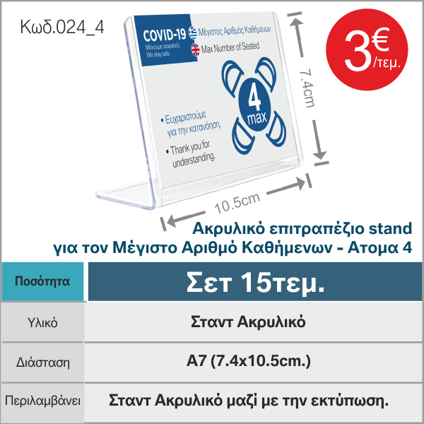 Stand Ακρυλικό επιτραπέζιο για τον Μέγιστο Αριθμό Καθήμενων 15Τεμ. – Ατομα 4